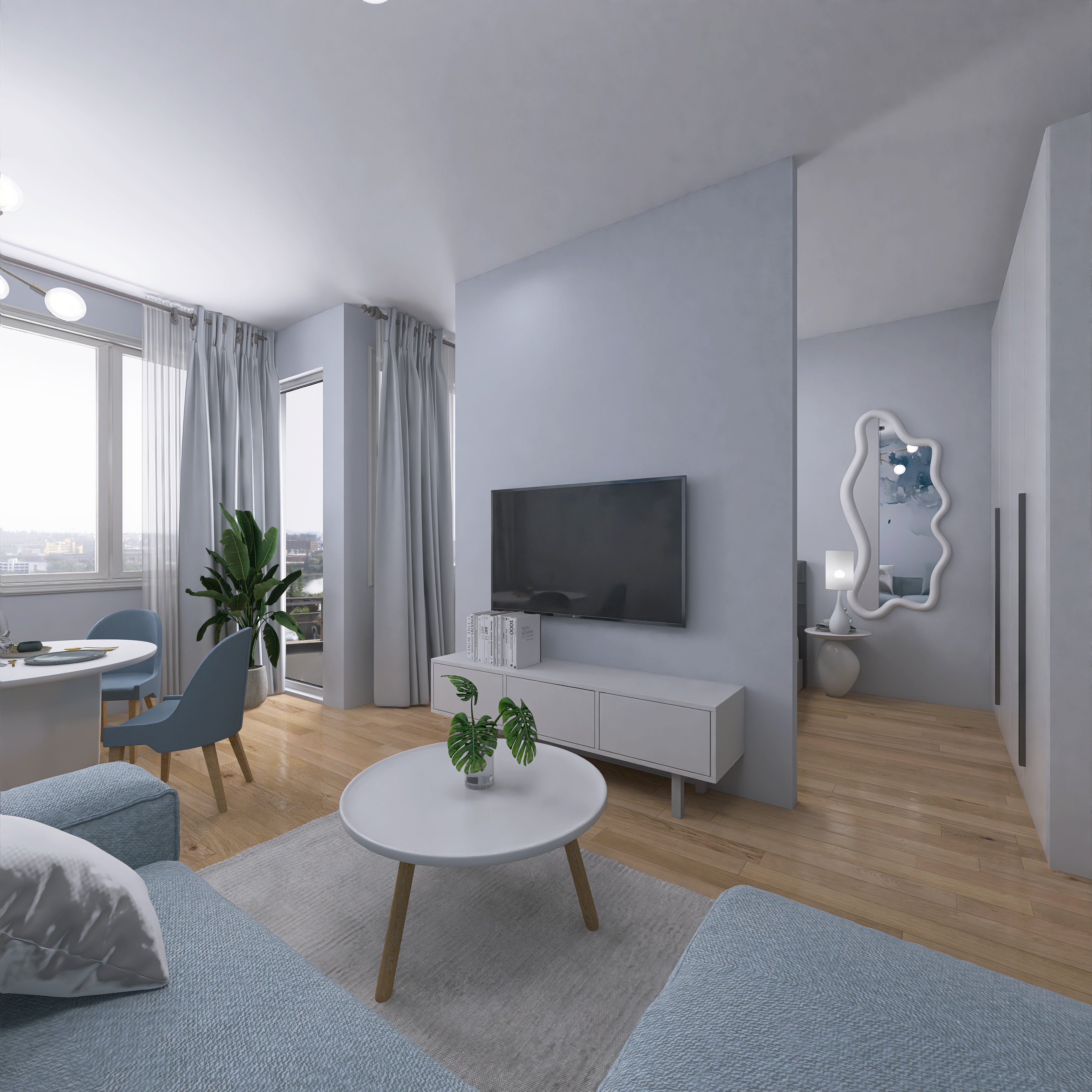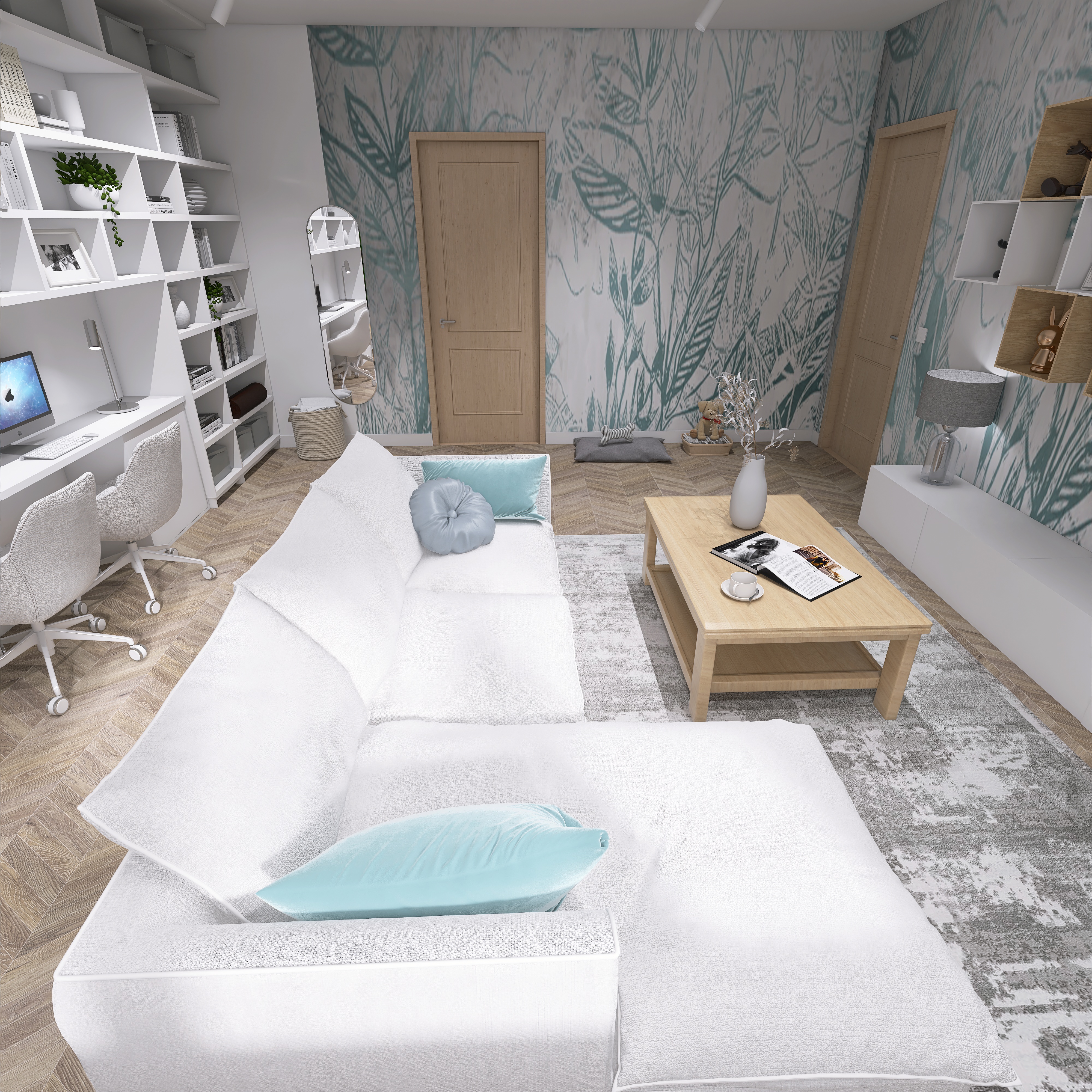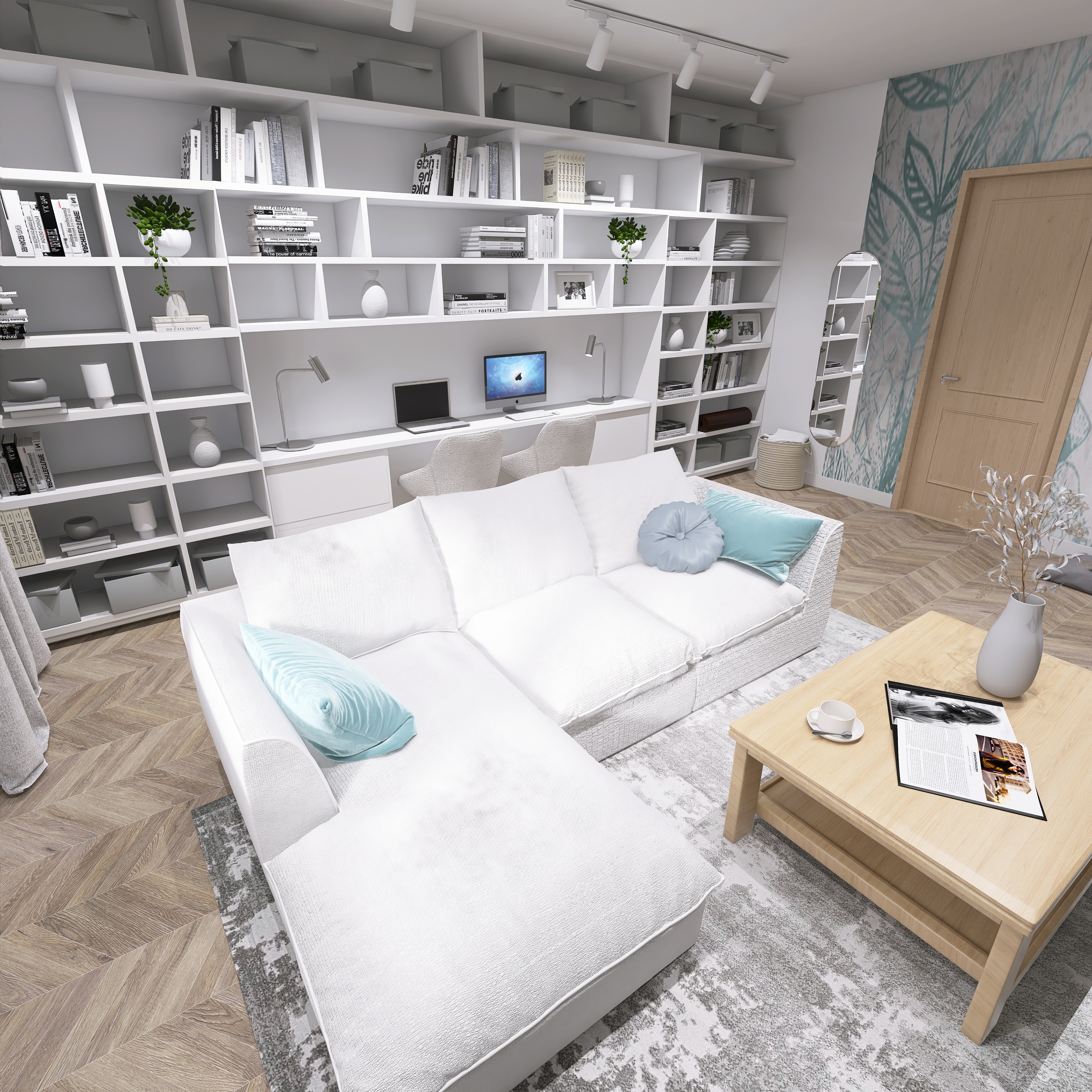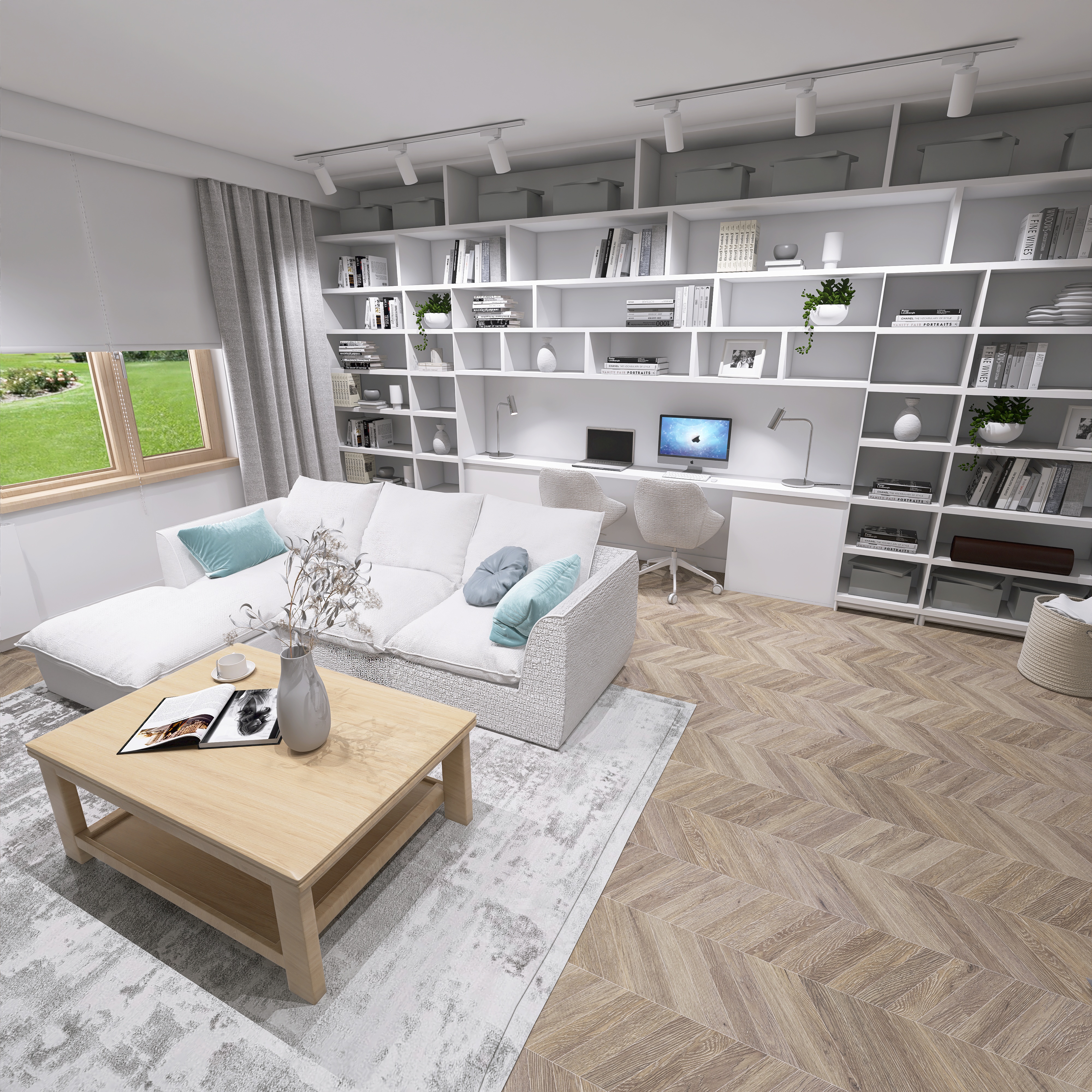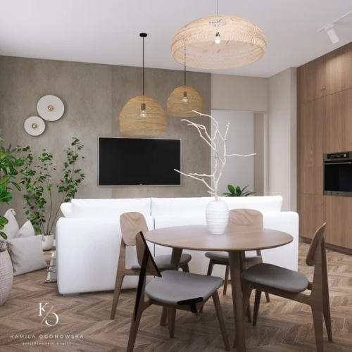 Wizualizacje nowoczesnych salonów prezentujące harmonijne połączenie elegancji i komfortu. Przestronne układy, stylowe detale oraz starannie dobrana kolorystyka tworzą wnętrza idealne do wypoczynku, spotkań i codziennego życia.